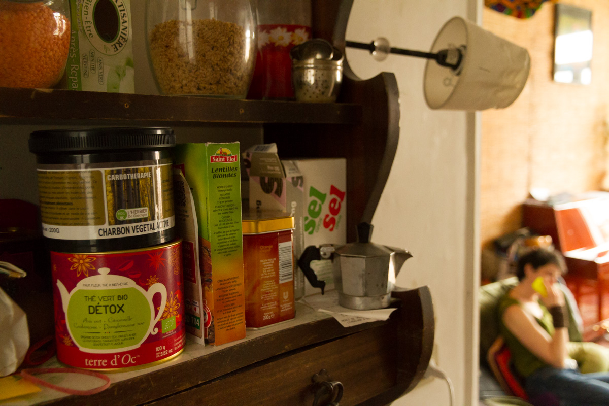 Une fois, durant les vacances d’été, une autre tante nous avait invité à goûter avec des copains du voisinage. J’avais 8 ans. C’était un vrai événement à ne pas rater, la seule fois où tout le monde était là au goûter. Je ne sais pas ce qui a déclenché la crise, peut-être une contrariété à cause d’un cousin, mais je suis partie bouder dans la salle de bain. Je m’y suis enfermée, virtuellement du moins car la salle de bain était fermée par un rideau… Malgré ma tante qui restait très gentille et très douce derrière le rideau, je n’ai pas réussi à sortir ni à répondre à ses questions.