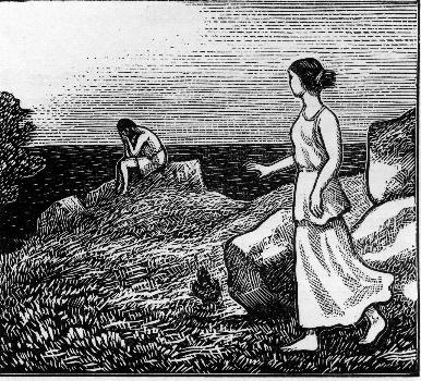 Ulysse et Calypso. « Mon esprit n’est point perfide et je n’ai pas en la poitrine un cœur de fer, mais de compassion. » Ayant ainsi parlé, l’auguste déesse le guida rapidement, et le héros suivait ses pas.